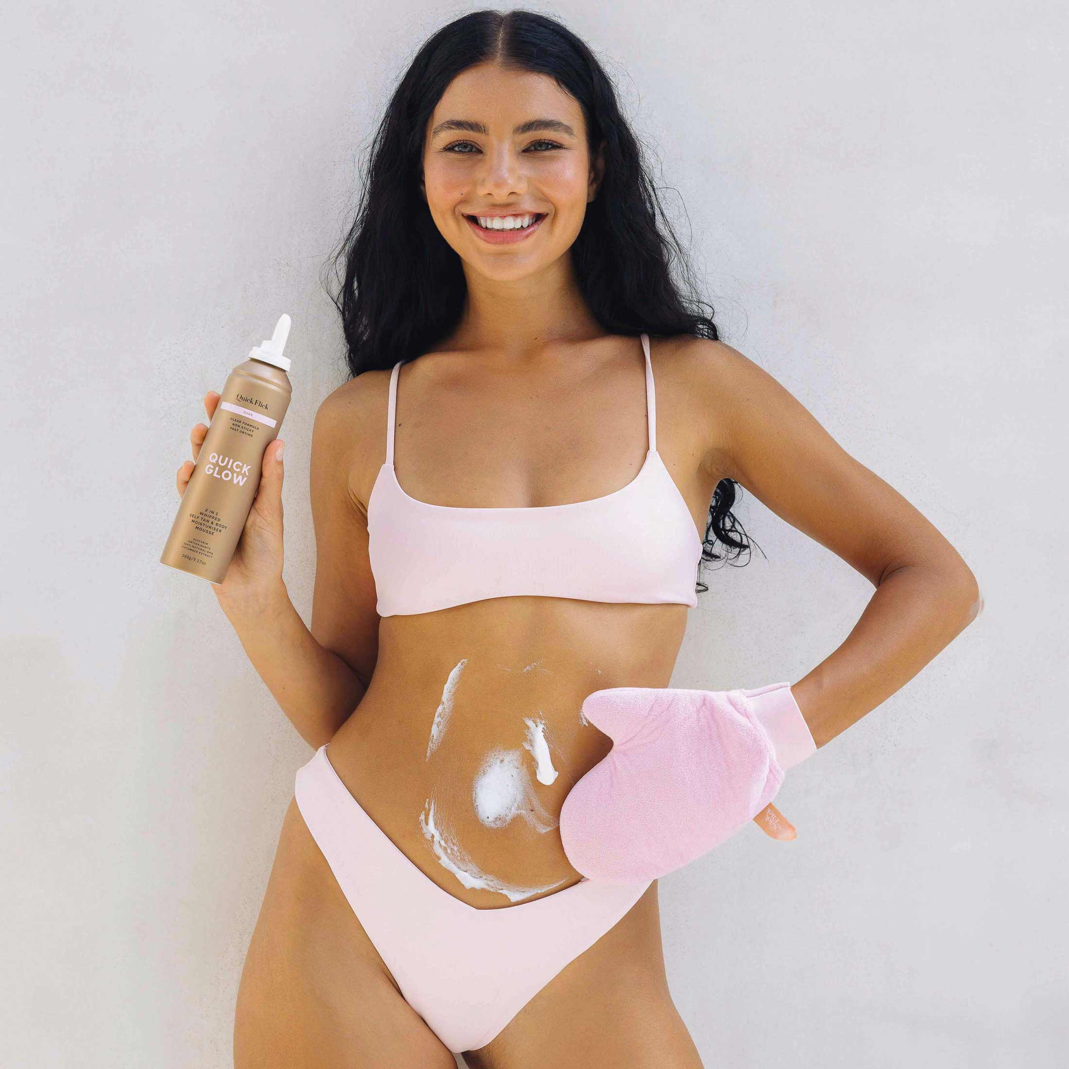 Infused with hydrating glycerin and antioxidants, it nourishes while you glow. The whipped, airy mousse glides on effortlessly, dries quickly, and leaves your skin soft - not sticky. This is your go-to self-tan for a flawless, radiant finish, all year round.
