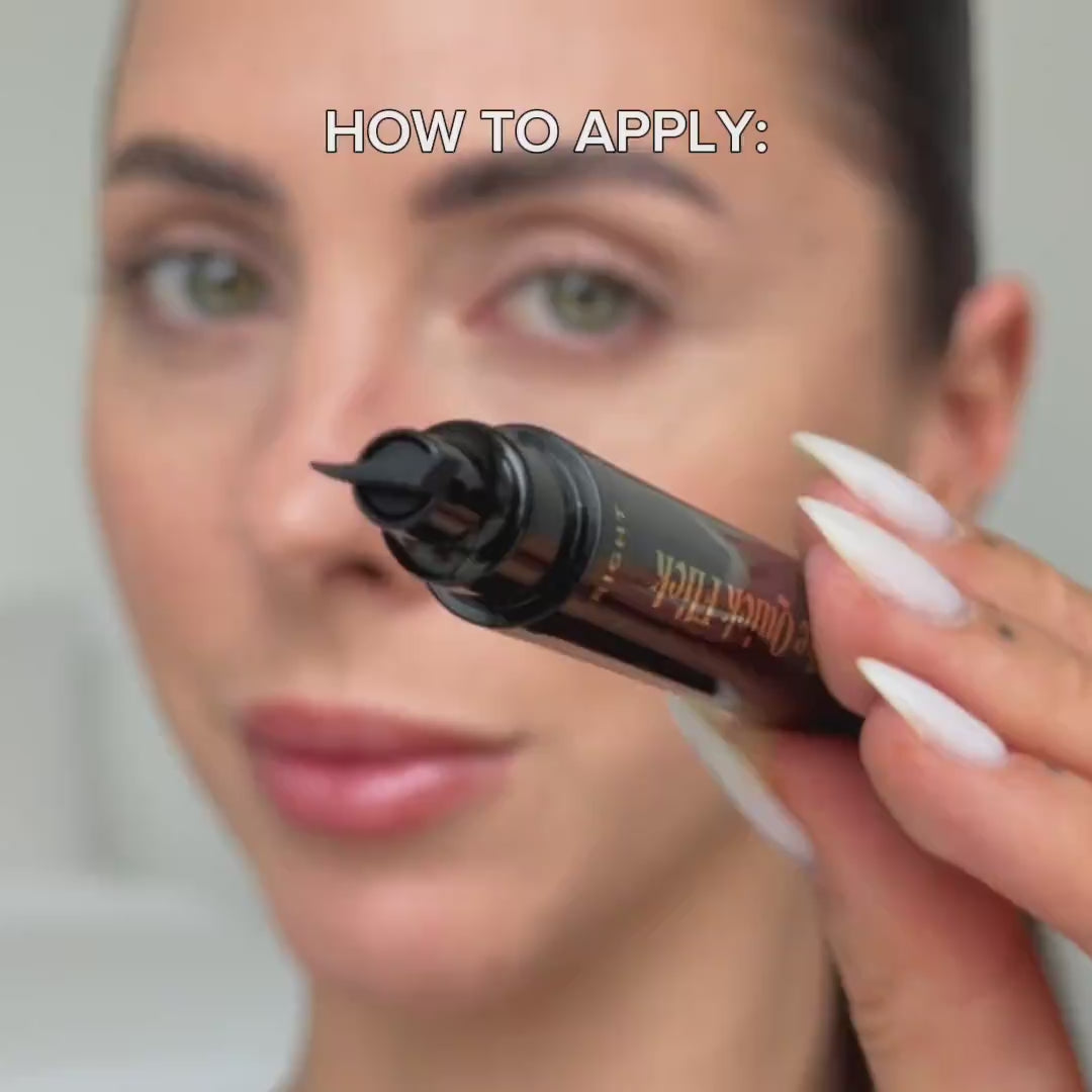 Each Quick Flick pack comes complete with two dual ended eyeliner pens including wing stamps (one for the left eye and one for the right) as well as two precision felt tip eyeliners to complete your look.